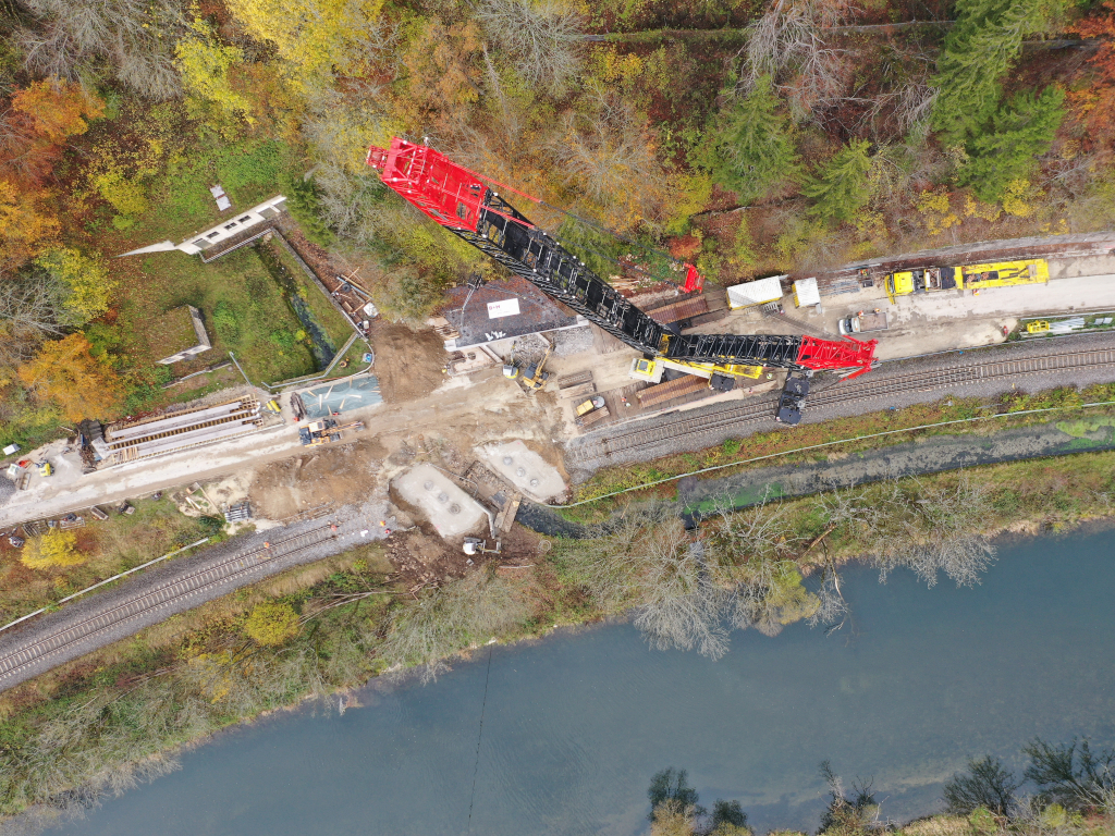 Eine unserer RK600 war in Beuron beim Einhub zweier neuer Eisenbahnbrücken beteiligt.
