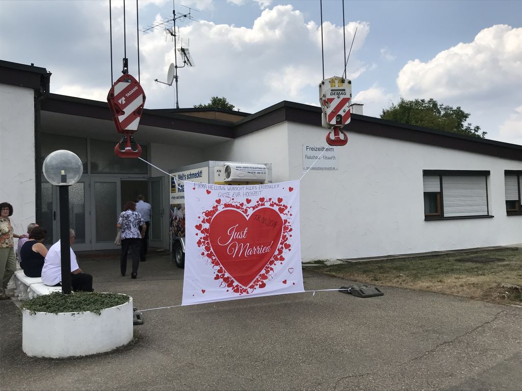 Tatkräftig mit zwei Geräten, haben wir das Brautpaar begrüßt, die sich erst ihren Weg in das Glück freischneiden mussten. Auch auf diesem Wege wünschen wir für die Zukunft erneut Alles Gute!