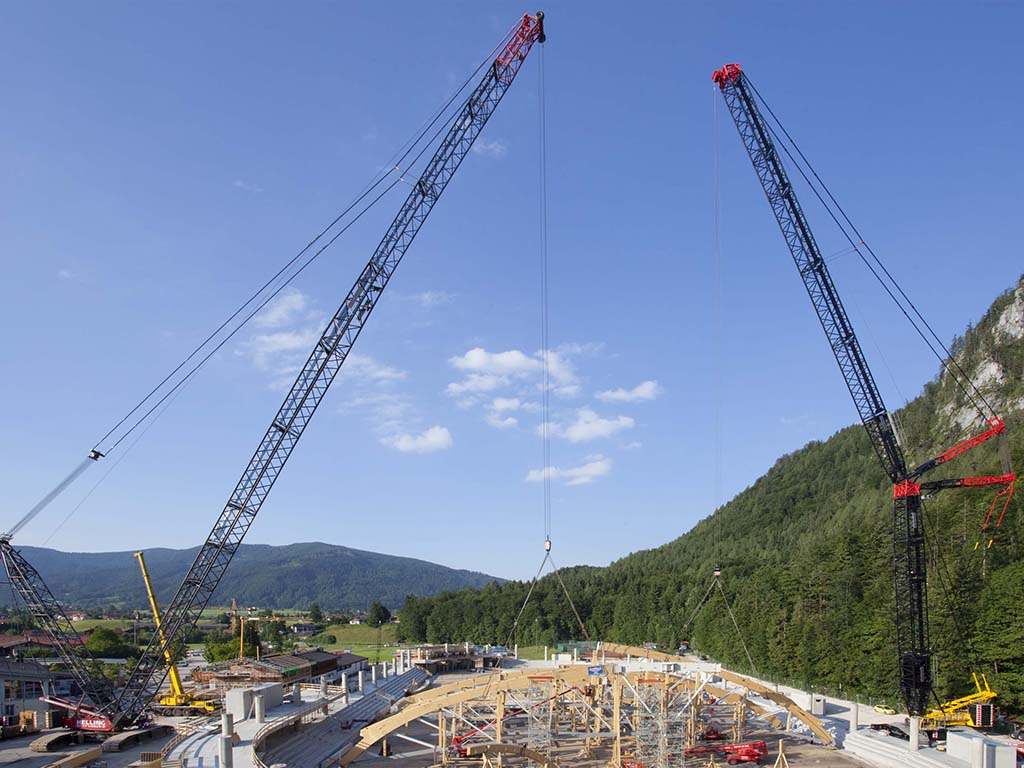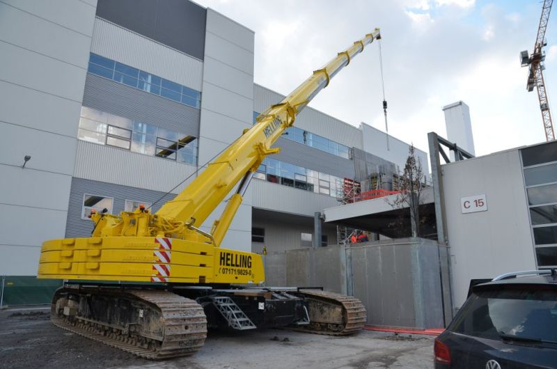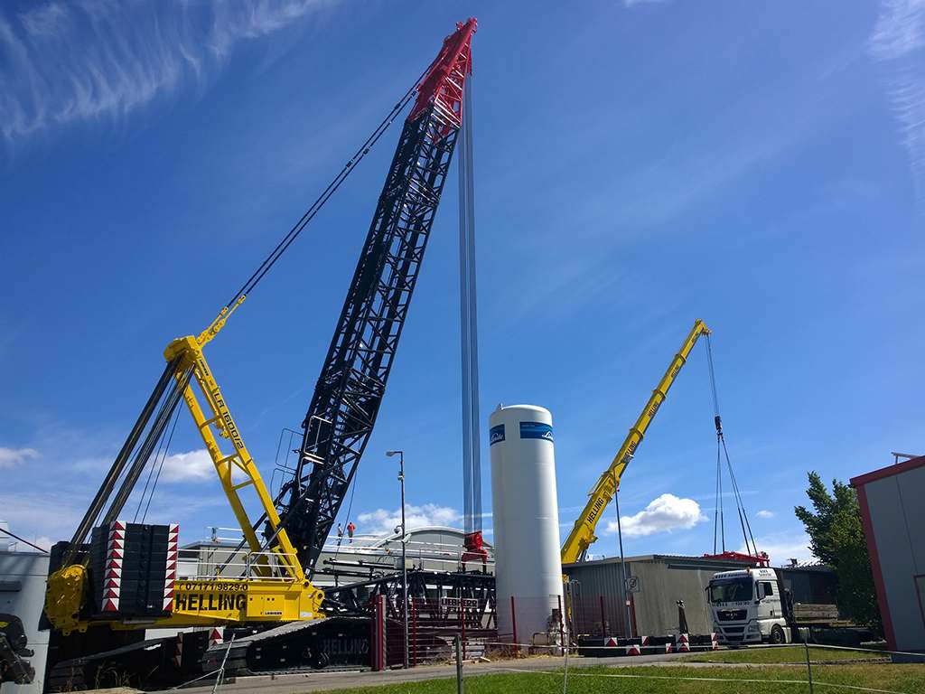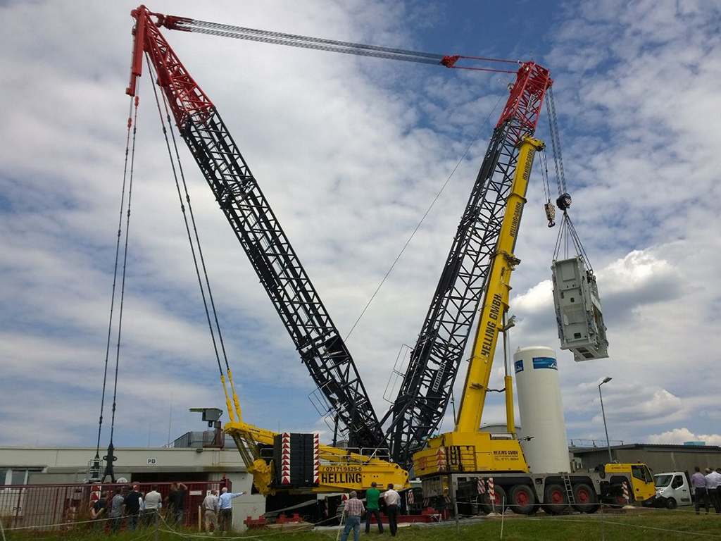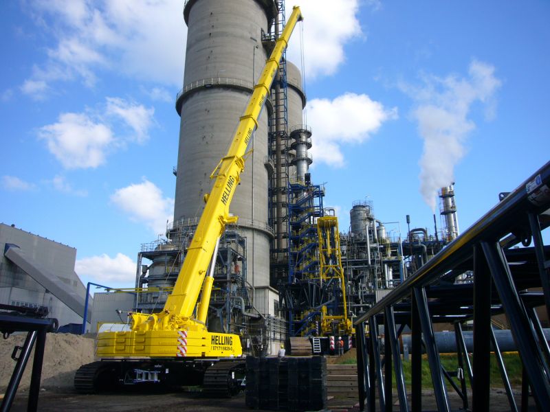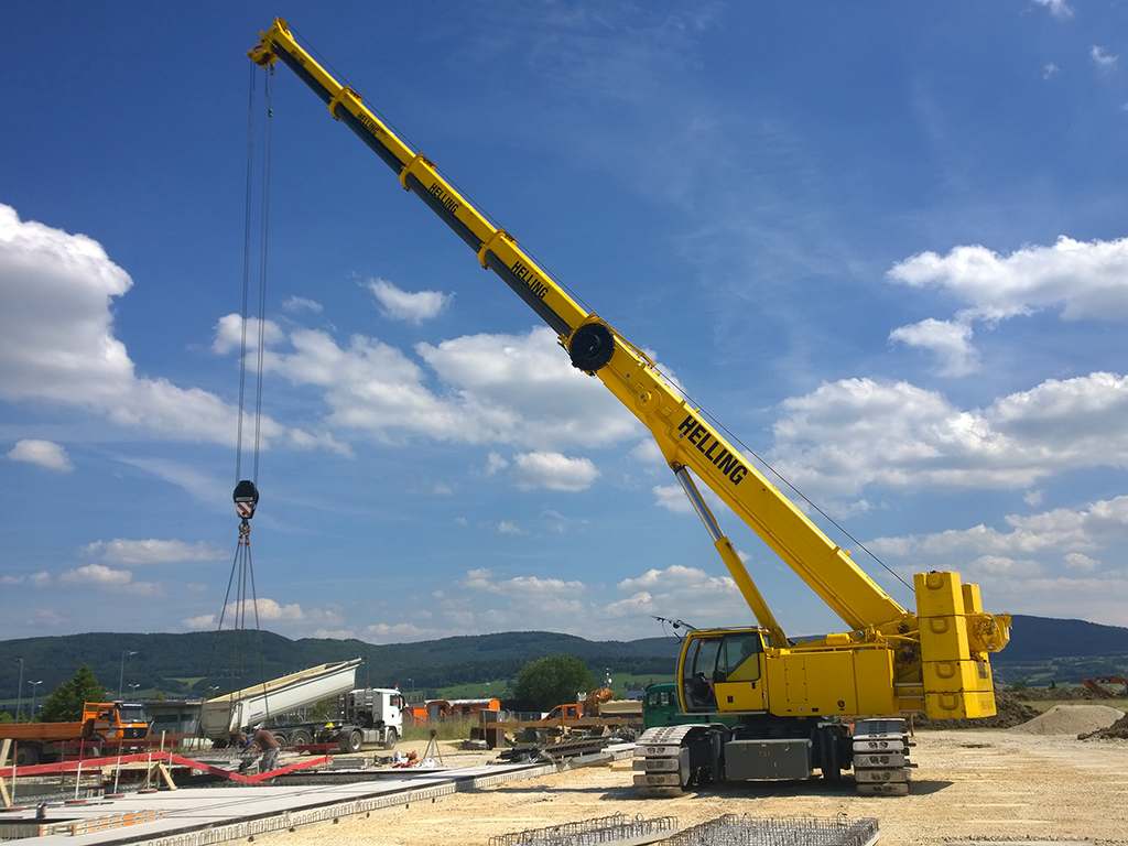 Da der Gittermastausleger deutlich höhere Traglasten erlaubt , erledigen unsere kleinen Gittermast-Raupenkrane Einsätze, die sonst große Teleskopkrane ggf. auch im Tandemhub erledigen.